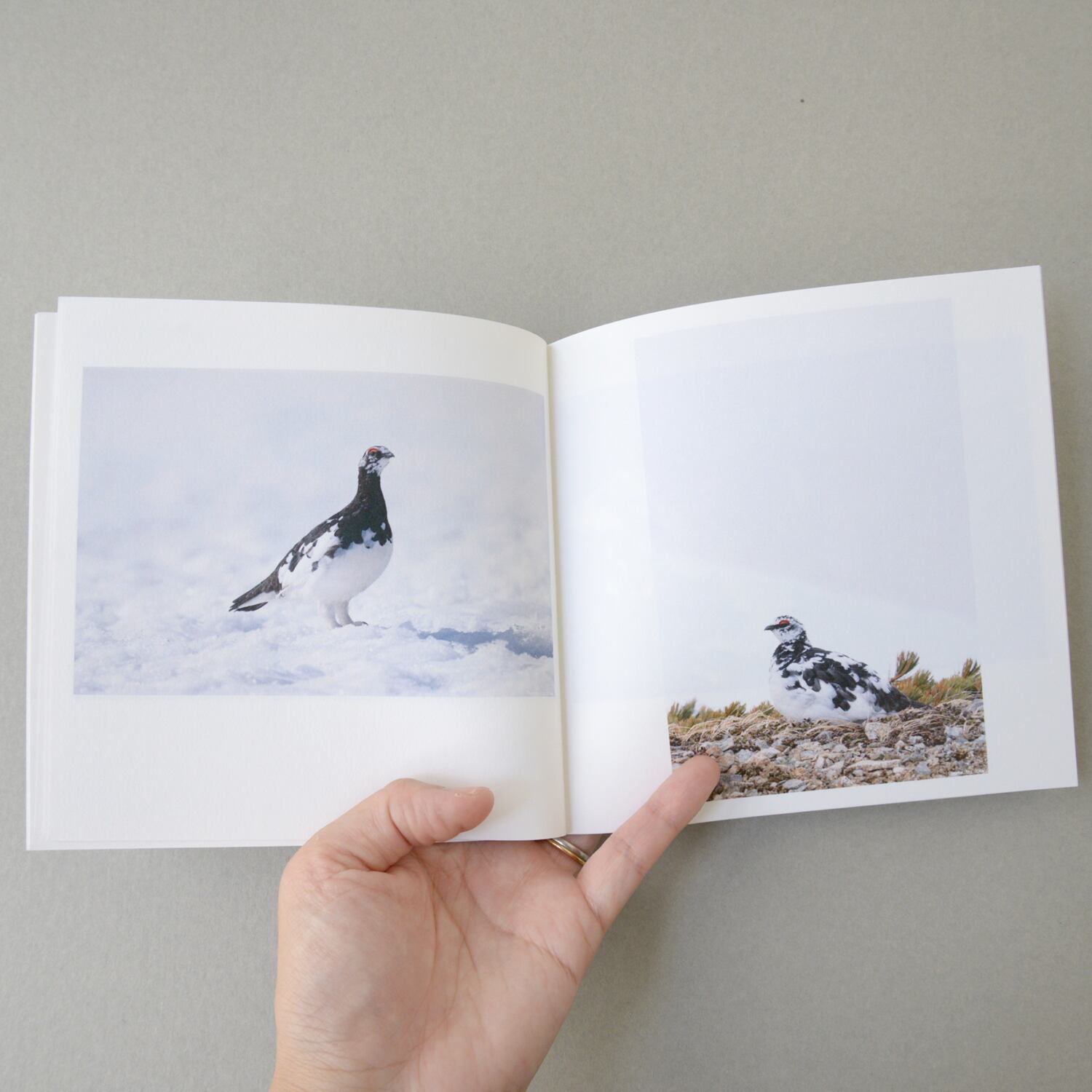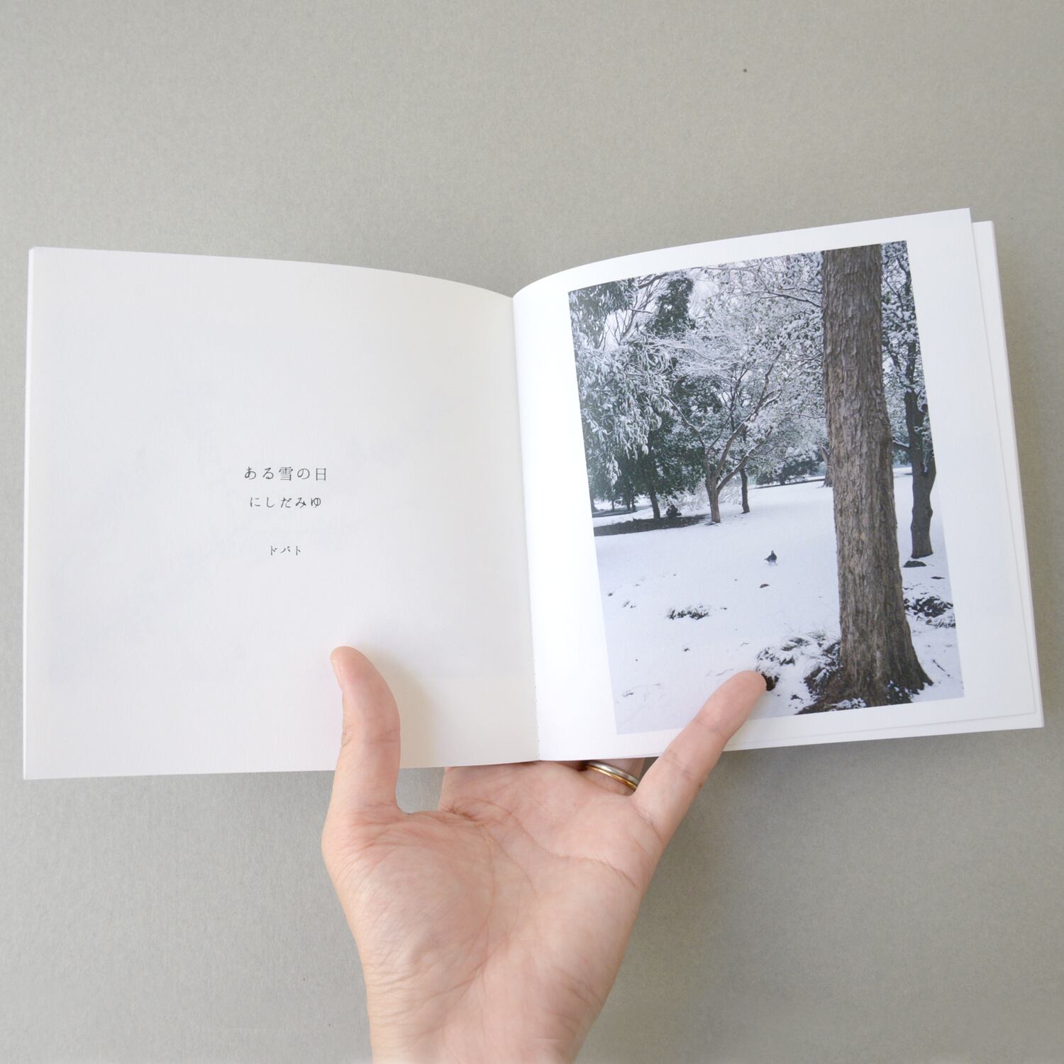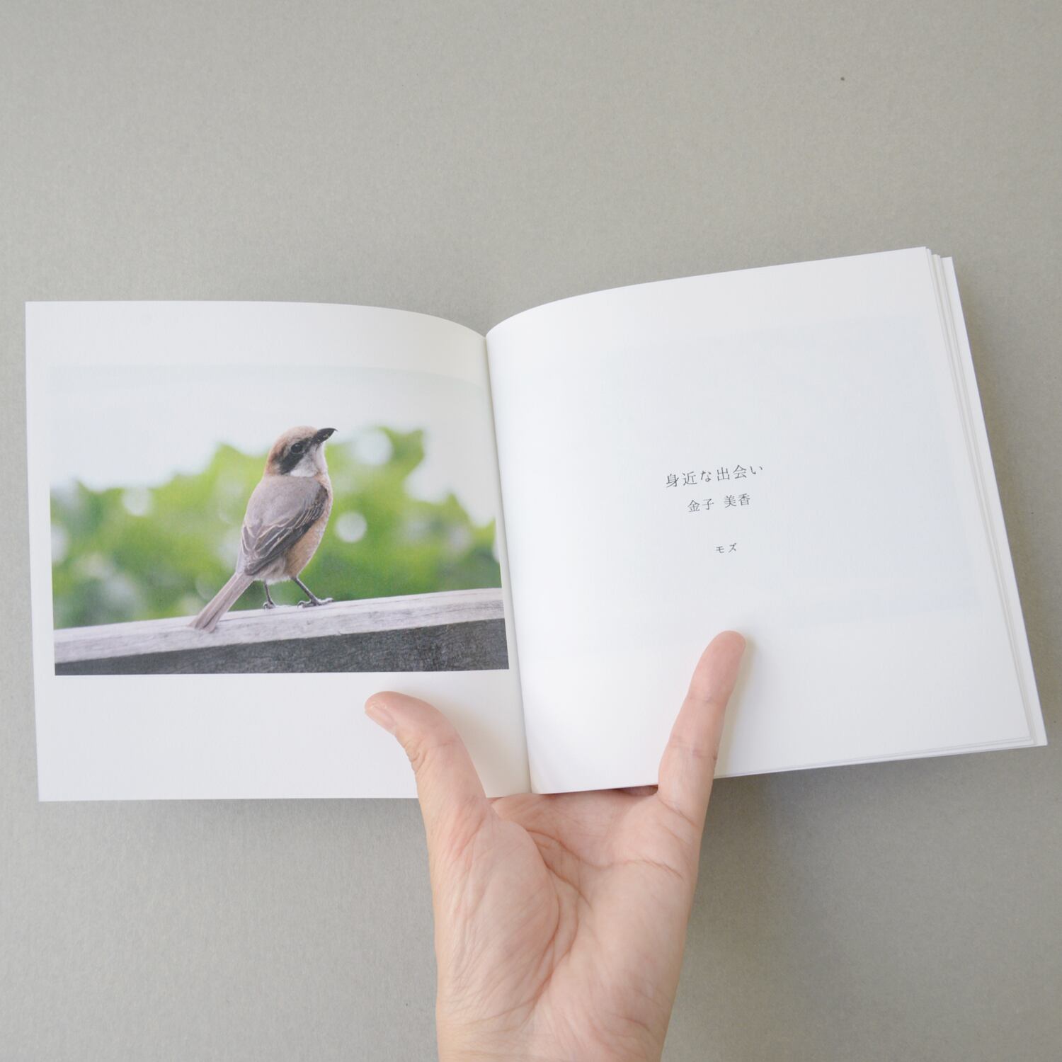 公募展DMの青い池にユリカモメがたくさん浮かんでいる写真が、トレーシングペーパーの表紙から透けて見え、ミシン中綴じの装丁がとてもかわいい1冊です。